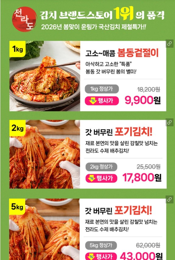 운림가 50년전통 국산 전라도 포기 김장 배추 김치 2kg 주문