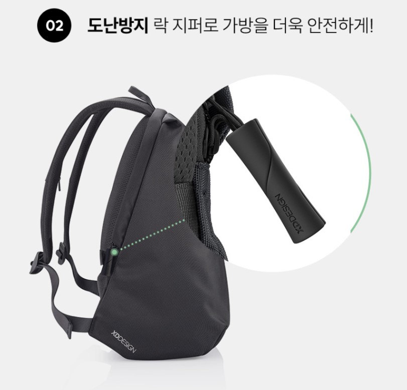 엑스디디자인하면 빼놓을 수 없는 것이 바로 '도난 방지' 기능이죠. 바비소프트 역시 지퍼를 숨길 수 있는 히든 지퍼 구조와 RFID 차단 포켓을 적용하여 해외여행이나 대중교통 이용 시 소지품을 안전하게 보호해 줍니다.