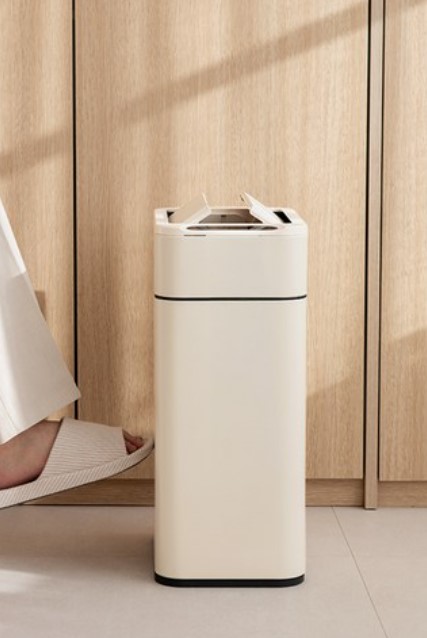 대부분의 자동 쓰레기통은 뚜껑이 위로 길게 열려 주방 하부장이나 선반 아래에 두면 뚜껑이 걸리는 불편함이 있었습니다. 하지만 다룸의 이 제품은 '양문형(Butterfly)' 방식을 채택했습니다.