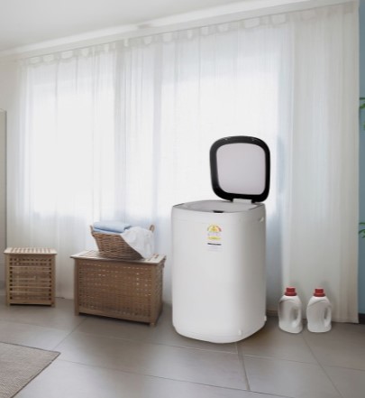 쿠잉 미니 세탁기는 3KG이라는 실속 있는 용량으로 설계되어 공간 차지를 최소화합니다. 다용도실이나 세탁실뿐만 아니라, 급수 및 배수 시설만 갖춰져 있다면 실내 어디든 설치가 가능하다는 점이 큰 장점입니다. 좁은 원룸이나 세컨드 세탁기를 놓을 자리가 마땅치 않은 가정에 최적화된 사이즈를 자랑합니다.