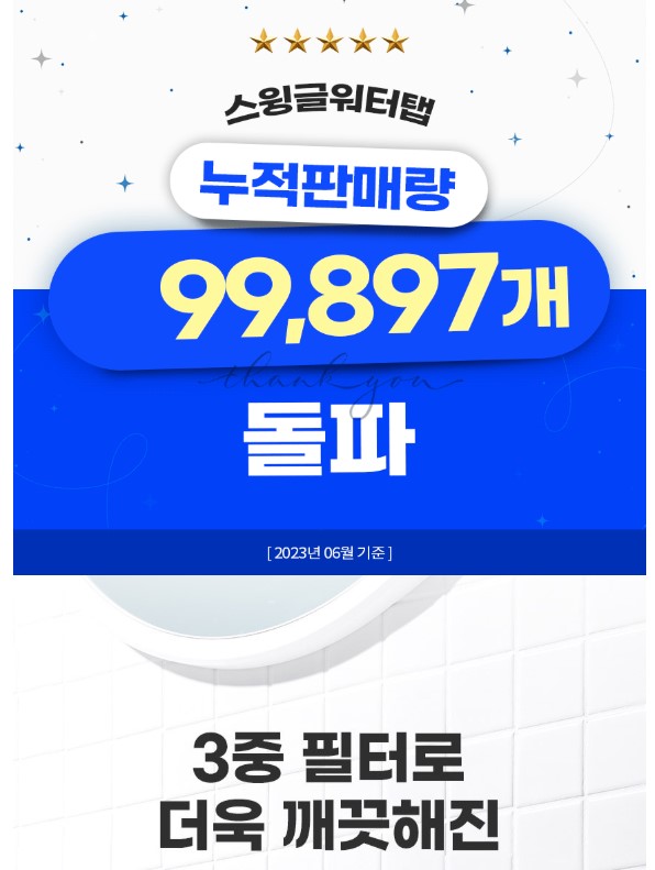많은 분이 선택하는 데에는 이유가 있겠죠? 이 제품은 2023년 6월 기준 누적 판매량 8만 7천 개를 돌파했을 만큼 검증된 스테디셀러입니다. 또한, 미소랩에서는 구매 후 1년간 품질을 보증해주기 때문에 더욱 믿고 사용할 수 있습니다. (단, 최초 설치 수전에 한하며 고객 부주의 파손은 제외)