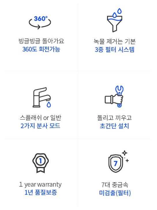 - 특징: 360도 회전, 3중 필터, 2가지 분사 모드